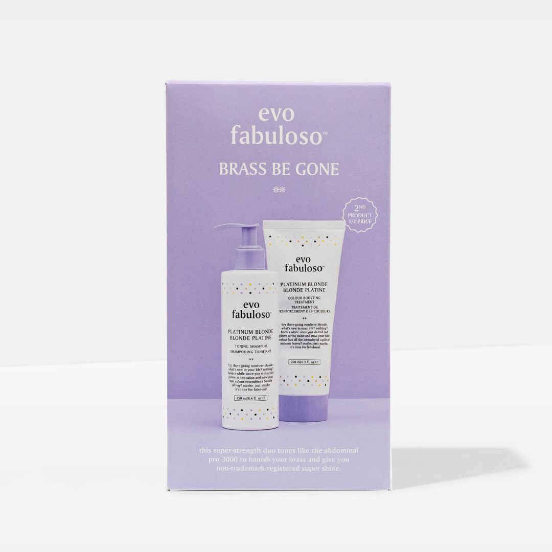 this super-strength duo tones like the abdominal pro 3000 to banish your brass and give you non-trademark-registered super shine. includes a half price platinum blonde toning shampoo.